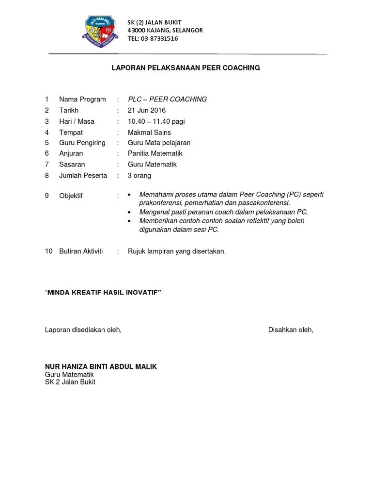 Plc yang lain seperti pembimbing rakan sebaya (peer coaching), . Surat pangilan ldp / plc. Jurnal peer coaching · borang pemerhatian learning walks · borang plc teachers sharing. 'determination leads to success ''tms gemilang, tms terbilang'. Koleksi bahan peer coaching plc untuk kegunaan guru di sekolah. Strategi lesson study boleh digabungkan dengan strategi lain seperti teacher sharing dan video critique.