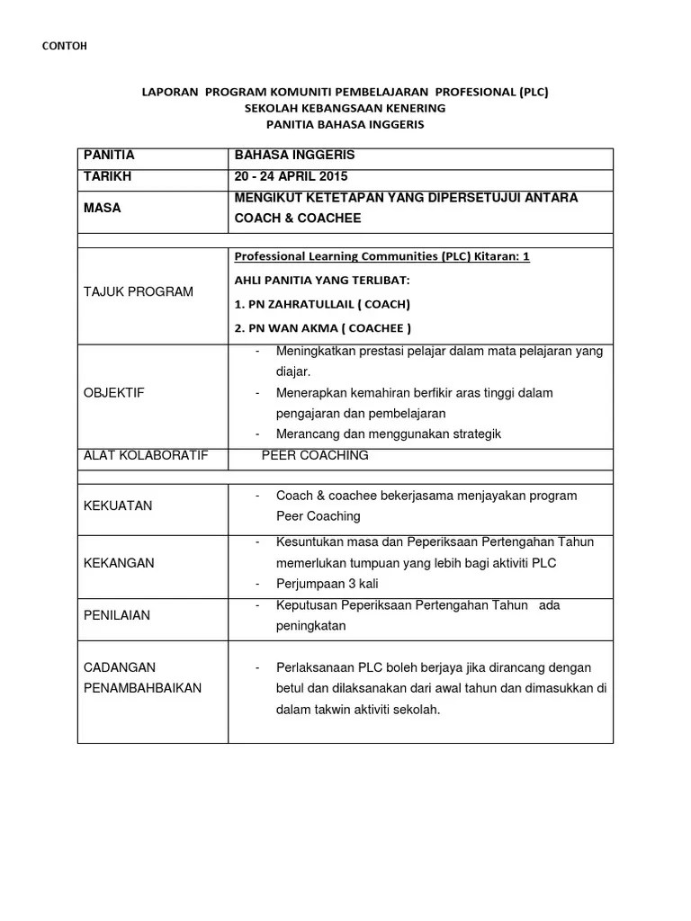 Laksanakan plc profesional learning community untuk membantu kompetensi . Strategi lesson study boleh digabungkan dengan strategi lain seperti teacher sharing dan video critique. Surat pangilan ldp / plc. View borang peer coaching.docx from pkes 3043 at ipg kampus bahasa melayu. Community(plc) untukpemerhatian khusus pdp guru di dalam bilik darjah.